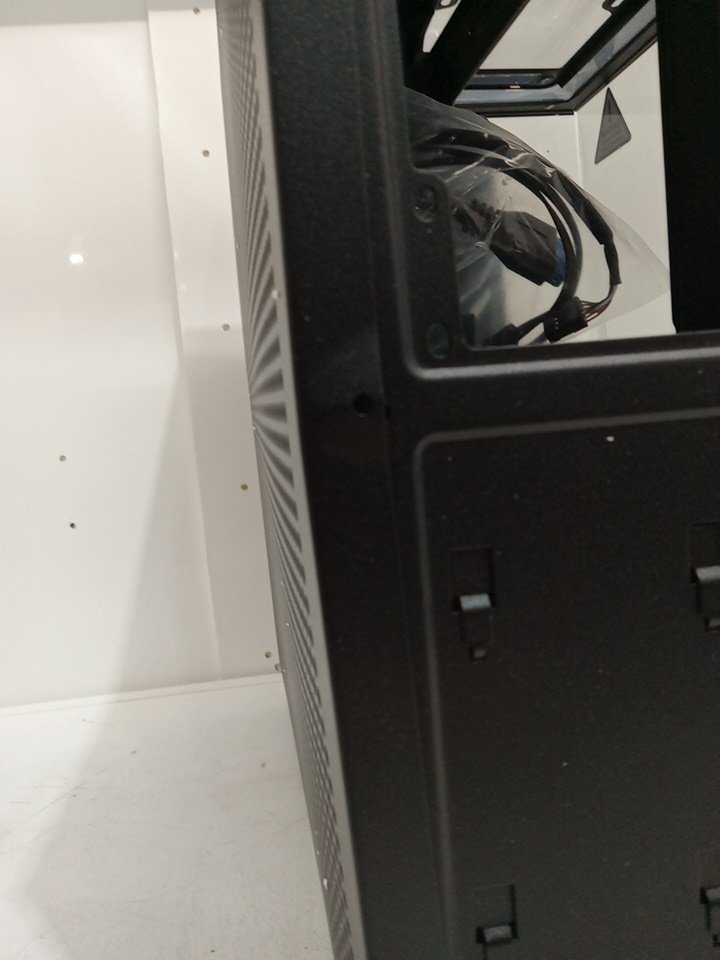 Item has sustained a bit of warping and part of the case assembly doesn't sit flush together as well as a couple tabs on the front part of the case have broken off as a result from shipping. The front part of the panel and one side that doesn't sit flush cause there to be a small gap between the power button and i/o ports. There are scuffs/scratches on various parts of the case as well. Please also note that there may be some additional hardware required to install/build using this PC Case. Refer to photos.
