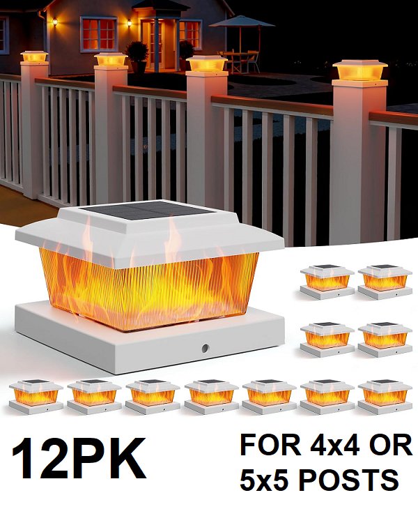 12pk APONUO LED solar light post caps multiple modes - For 4x4 or 5x5 Wood or vinyl posts - White (model: M019)