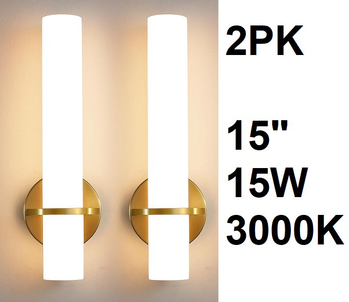 2PK Aijiasi Wall sconce modern bathroom dimmable LED - 15" - 15W - 3000k - Gold/frosted/white (Model: 8001WL-14-US)
