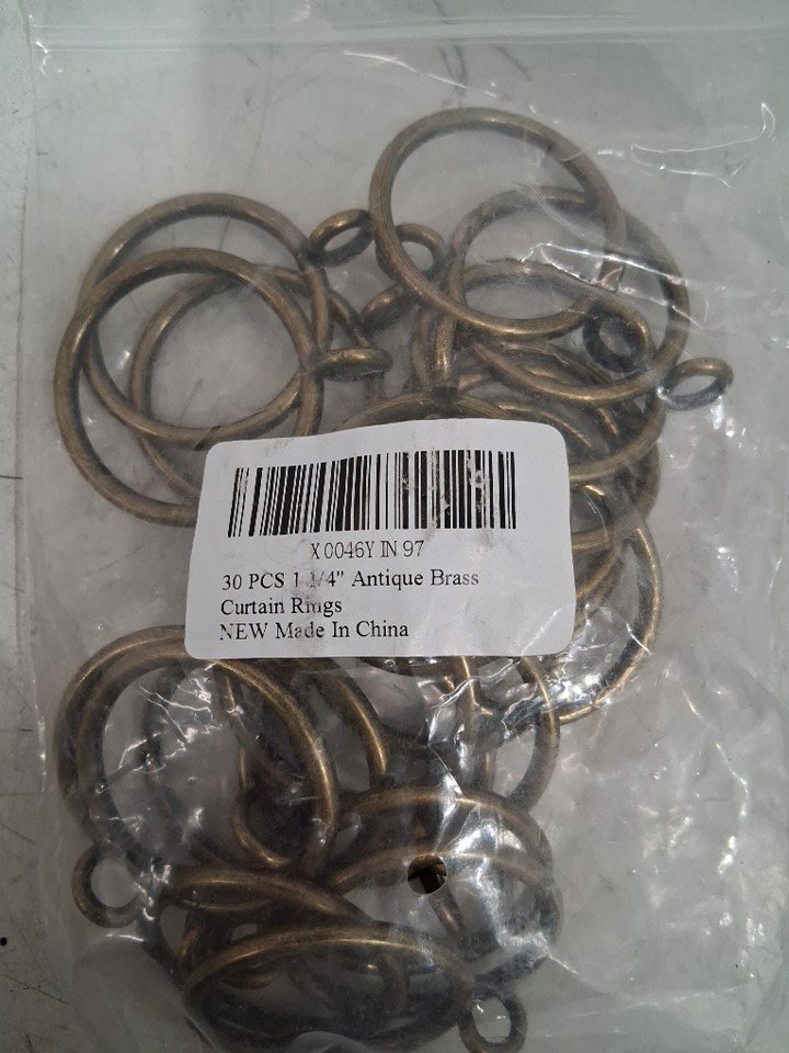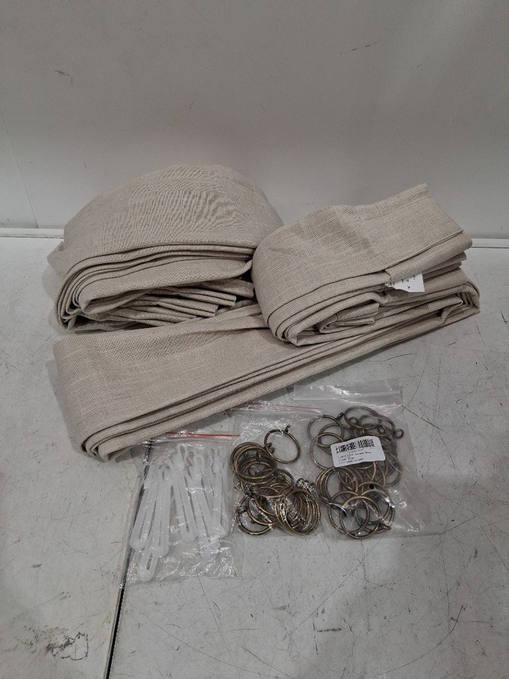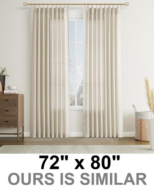 (2 PANEL) PLEATED LINEN CURTAINS WITH ANTIQUE BRASS CURTAIN RINGS - 72" X 80"