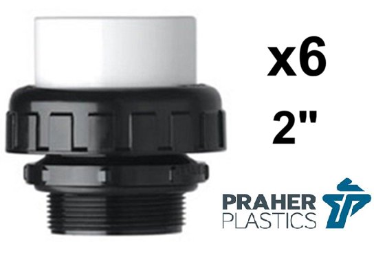 6 Praher Plastics Male Thread NPT High Heat Union 2" Sockets - (Model: 200-906)
