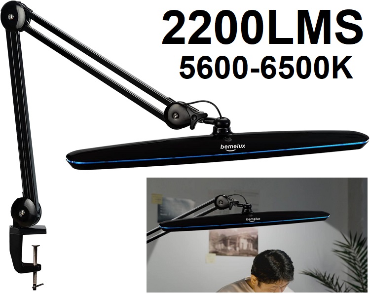Bemelux LED Task Lamp with Adjustable Arm - 4 Levels - 2200 Lumens - 5600K / 6500K - black (model: 9503LED)