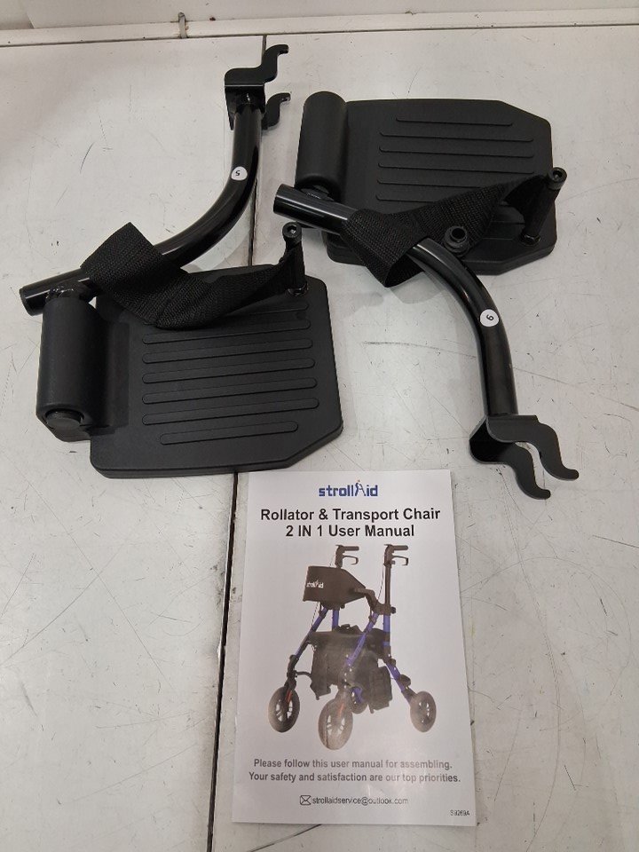 StrollAid 2-in-1 Rollator Walker/Wheelchair Combo Transport Chair with Brakes - Holds Up to 450 LBS - 10" Wheels - Black (Model: S9269A)