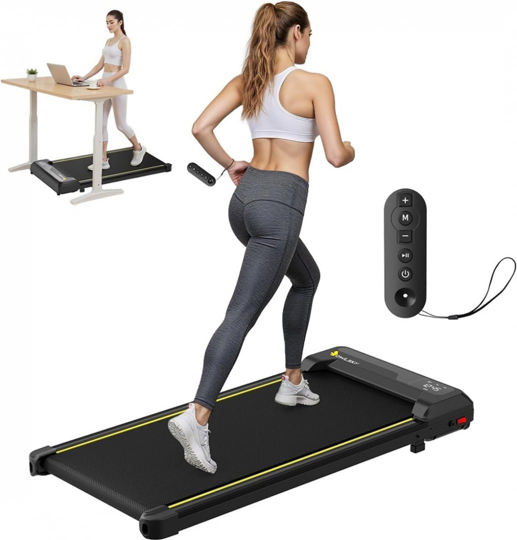 OWLSKY 2 in 1 Quiet Mini Under Desk Walking Pad Treadmill with Remote Control & LED Display - 25LBS CAP - Black/Yellow (Model: OW-F5A)