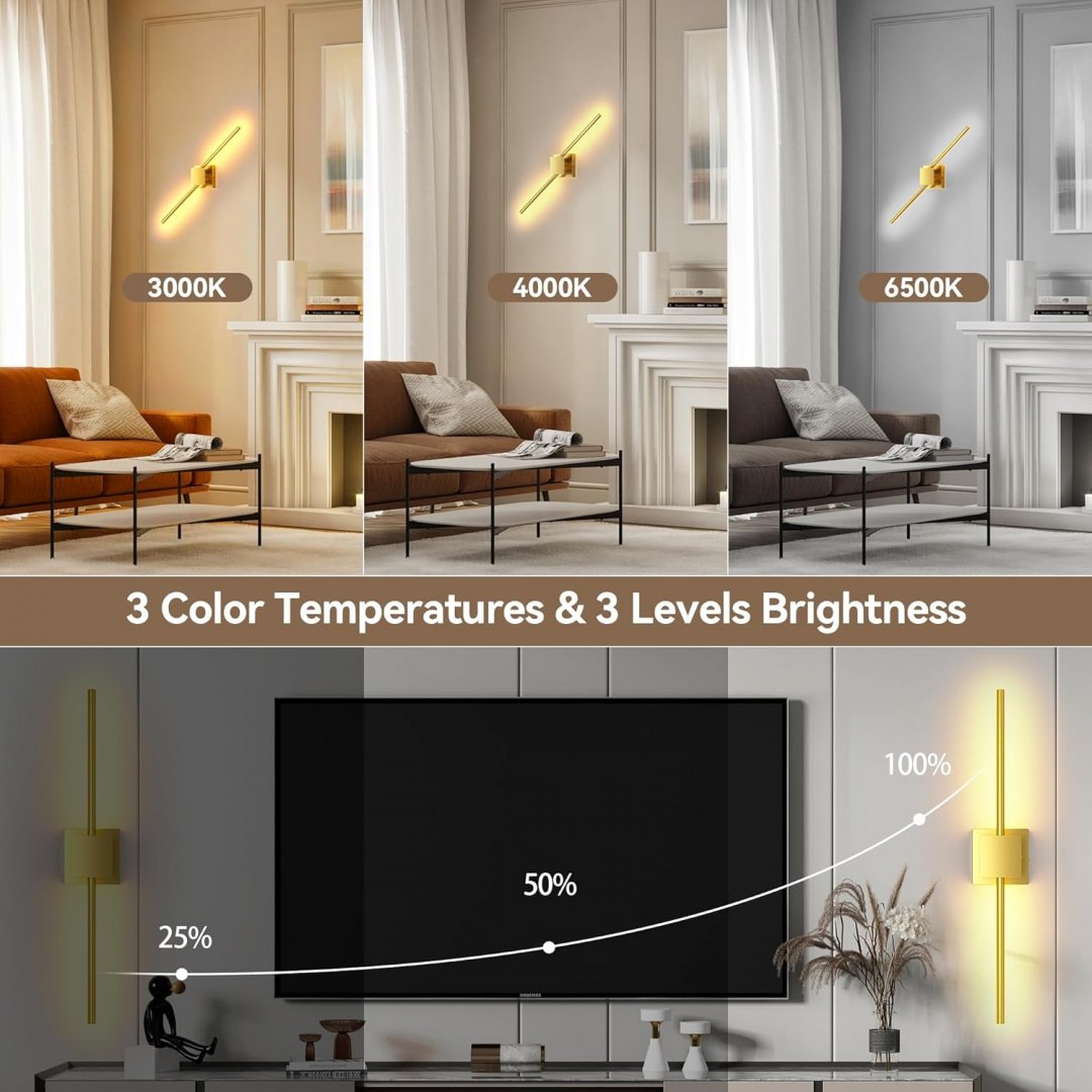 2PK Torchlet remote Wall Light Fixture Indoor with adjustable brightness - Sconce Gold - 12000mAh - 3000k-6500K (model: ‎Wl-2023)