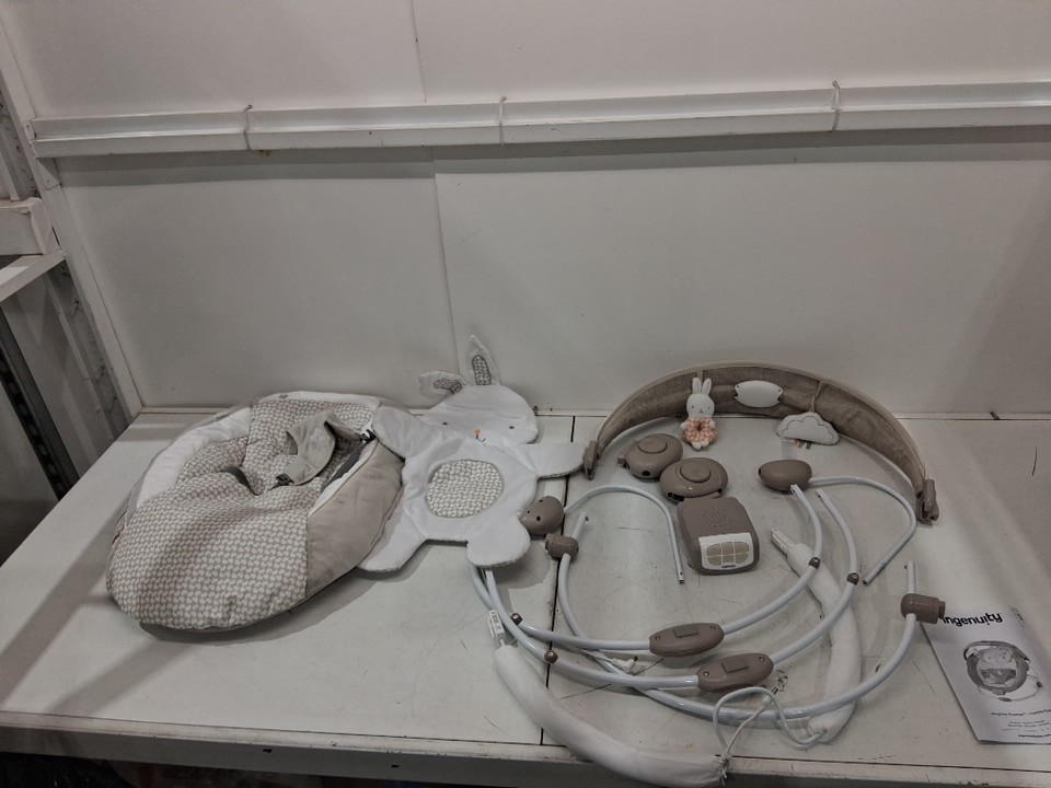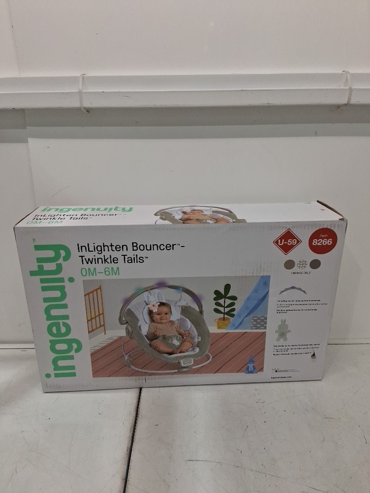 INGENUITY INLIGHTEN baby BOUNCER with lights vibration sounds and music - 20LB max - twinkle tails bunny theme - GREY (MODEL: 8266)