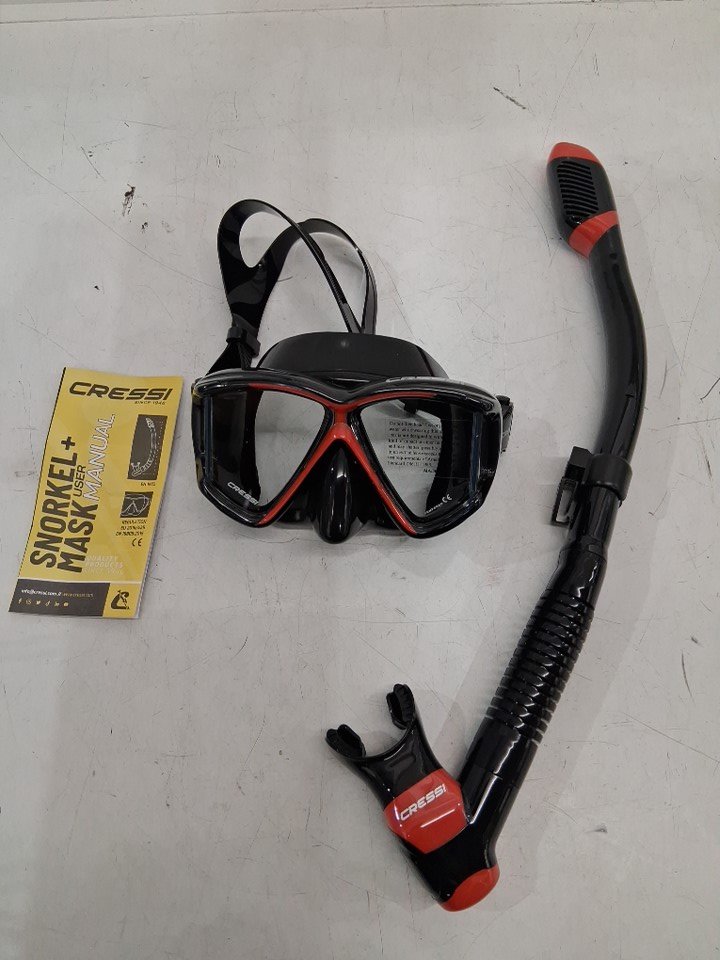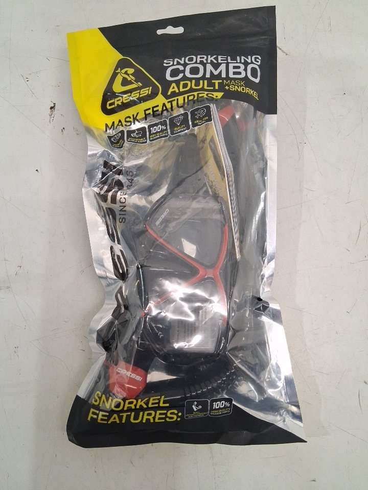 Adult Cressi Pano 4 and Supernova Dry Snorkel and Mask Combo - OSFM - Black/Red (Model: USC295058)