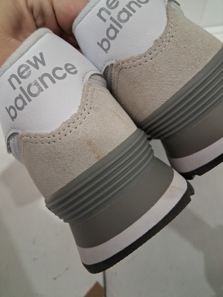 there is some dirt on the bottoms, as well as a brown stain on the back left shoe.