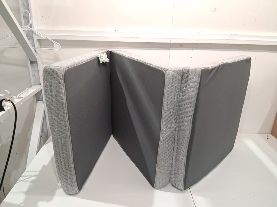 Memory Foam Tri Fold with Waterproof Washable Cover - cot size (75" x 25" x 4") - grey