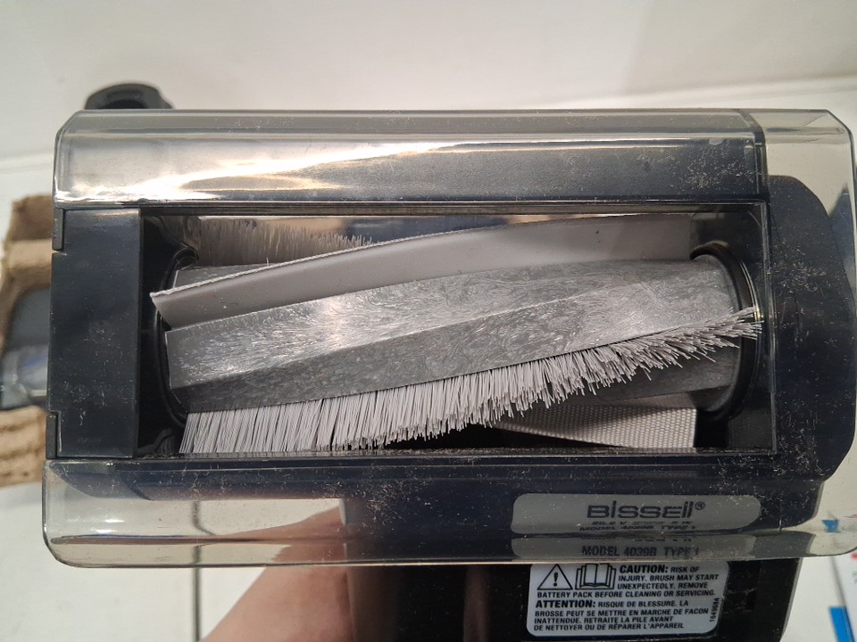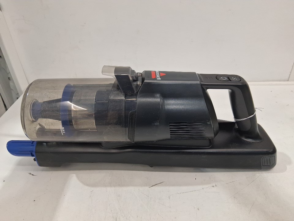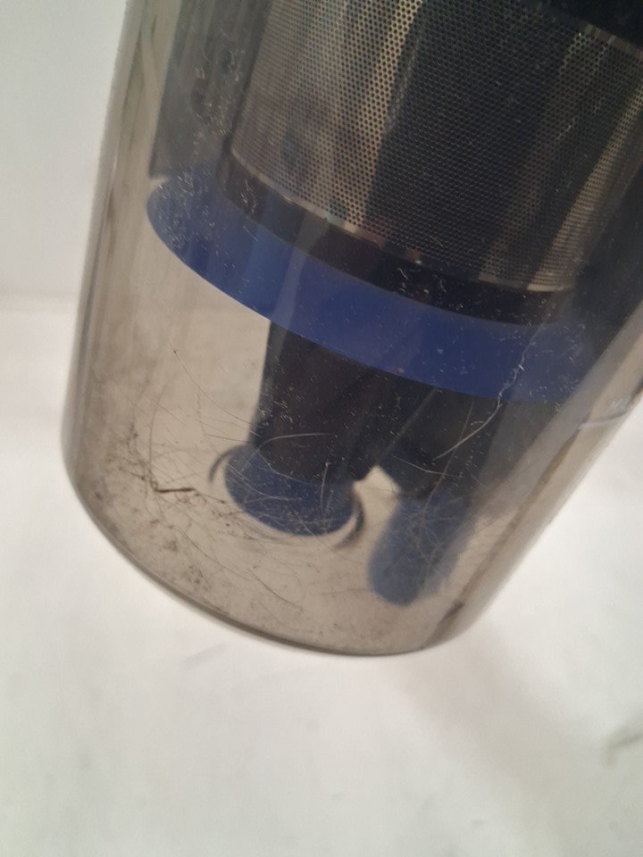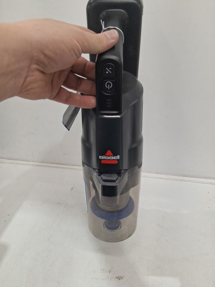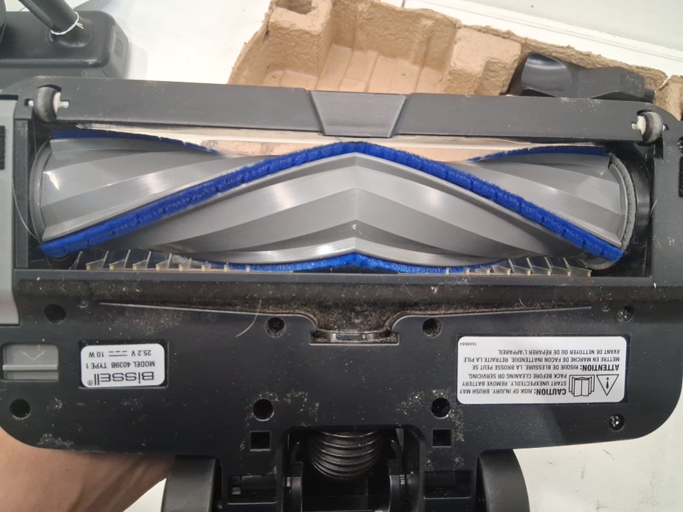 The charger appears to be missing from the packaging, so customer will need to supply their own replacement in order to recharge the vacuum's battery. There is also some dust left in the tank as well as some stuck on the underside of the vacuum heads indicating some previous use - see photos. Outside of the missing charger and the signs of use, there are no visible issues with the vacuum or any parts, and function appeared normal when tested.