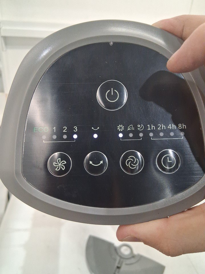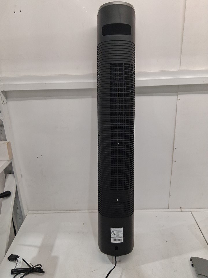 One half of the base is missing, so customer will need to provide a replacement or find a different way to secure the fan to keep it in an upright position - see photos. Outside of the missing piece, appears to be unused and function without issue.