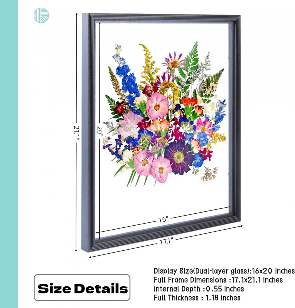 2 nfw double glass sided floating picture frame for walls - 16" x 20" - black