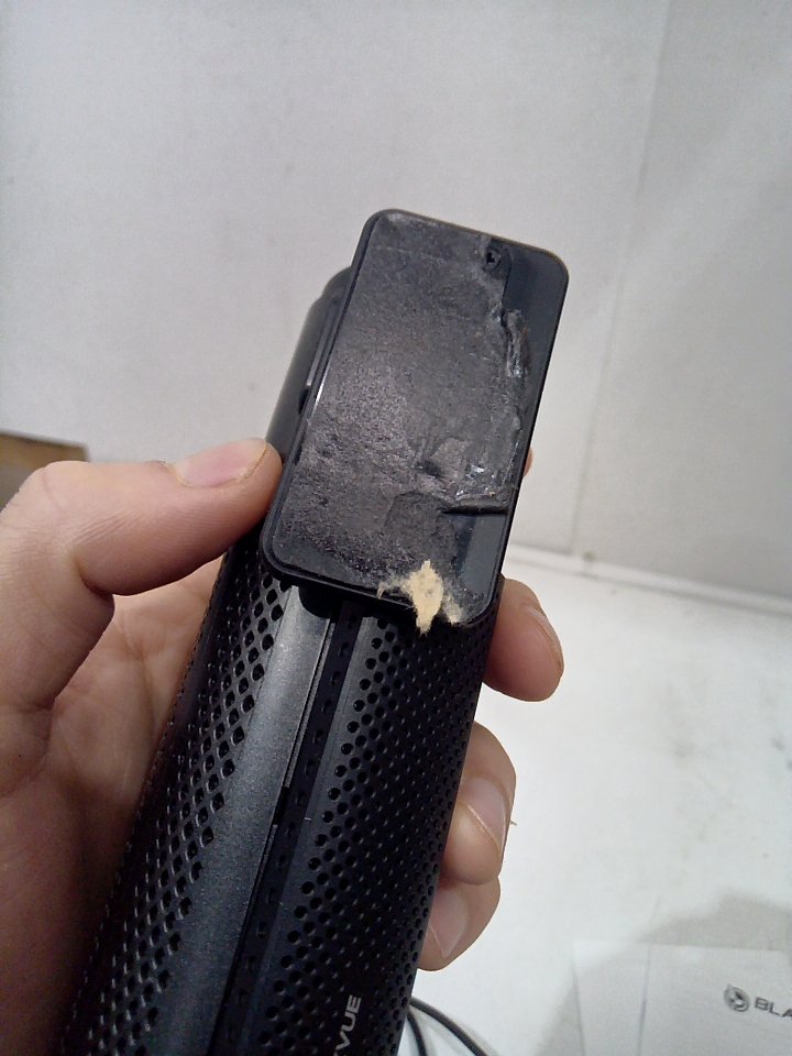 There is rips and residue on the adhesive pad on the back of the larger camera piece. (SEE PHOTOS)