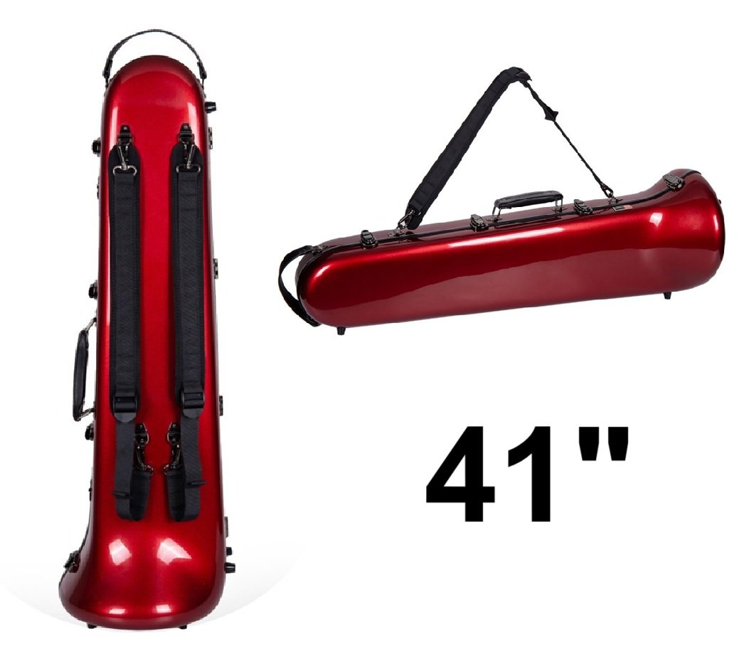 crossrock fiberglass tenor trombone case with keys and removeable straps - 41" x 14" x 13" - red - (model: crf1020tb)