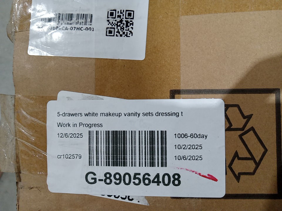 FUFU&GAGA 5-Drawer Makeup Dressing Table Set with Stool, Mirror, LED Light, and 3-Tier Storage Shelves - 55" - BLACK (model:KF210106CA-07HC-001))