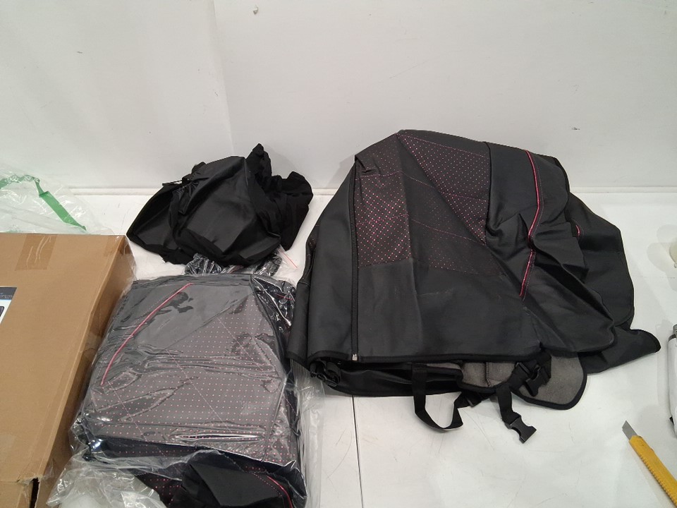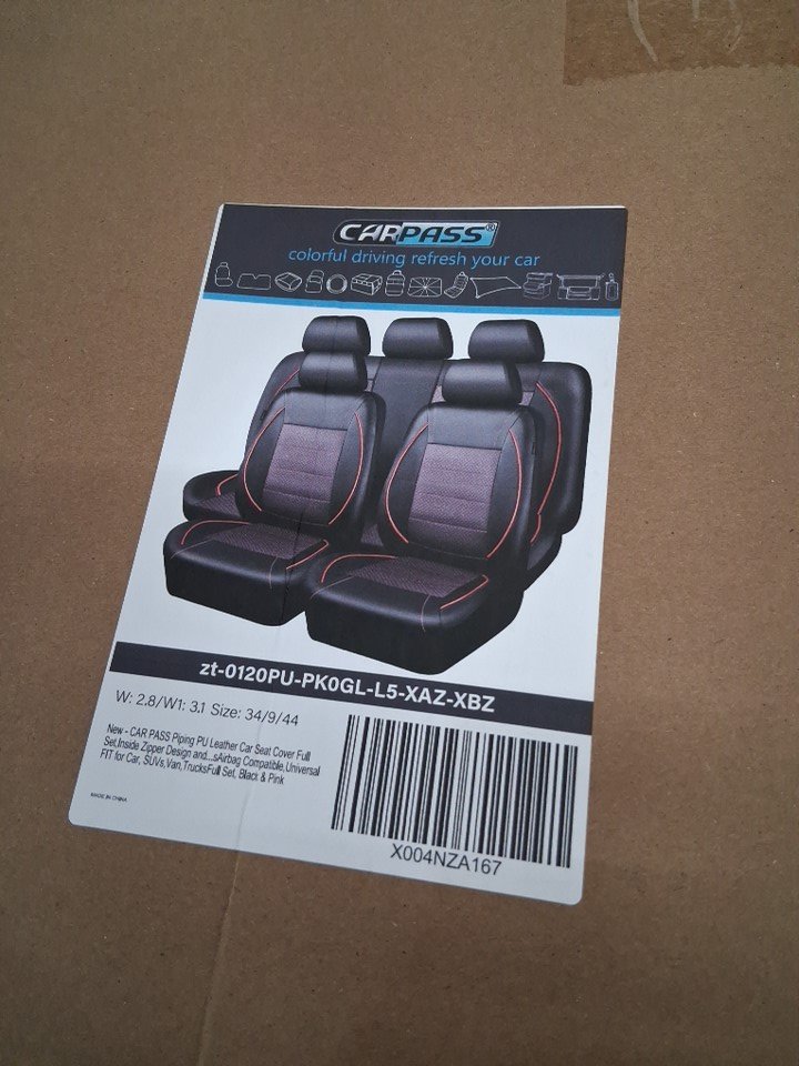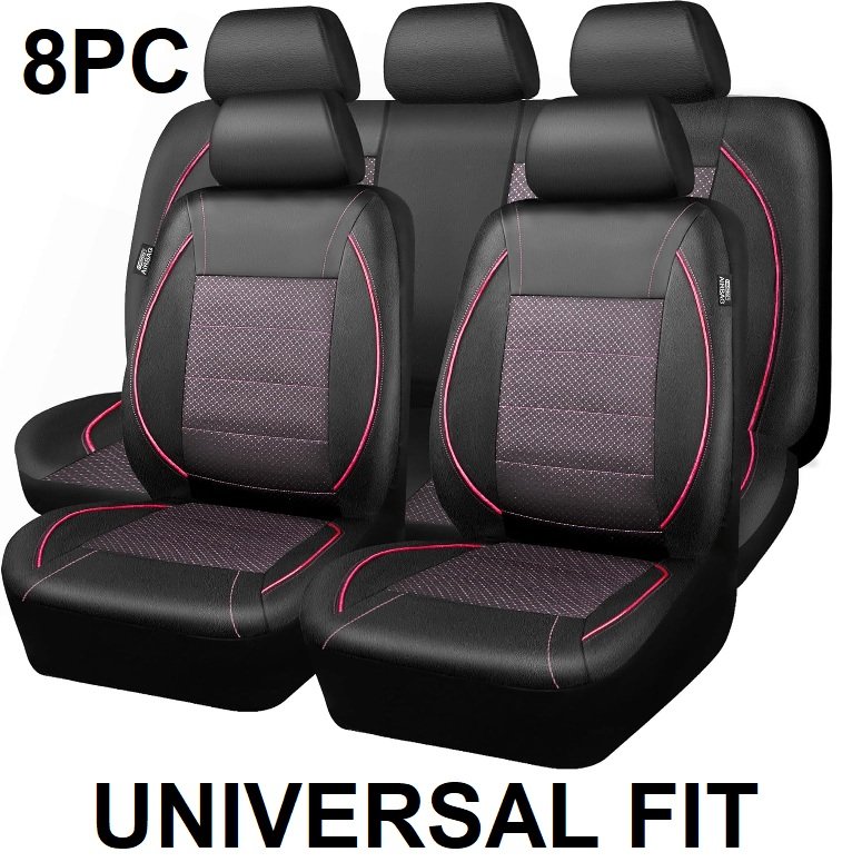 8pc carpass Piping PU Leather Car Seat Cover set - universal fit for car/suv/trucks - black/pink (model: zt-0120pu-pk0gl-l5-xaz)
