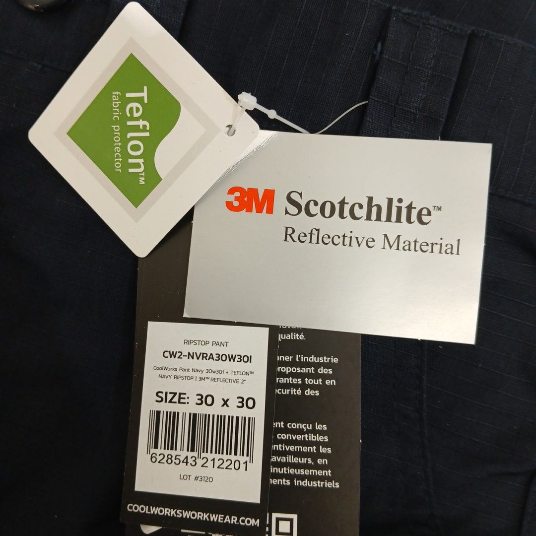 MEN'S COOLWORKS 3M WORKWEAR RIPSTOP HI VIS REFLECTIVE 2* WORK PANTS - 30w 30l - NAVY blue/grey