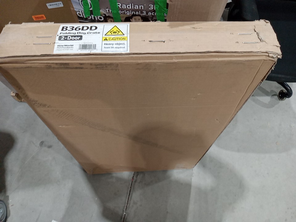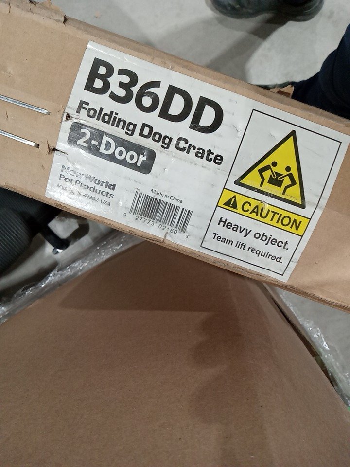 NEW WORLD PRODUCTS DOUBLE DOOR FOLDING METAL DOG CRATE - INCLUDES LEAK-PROOF PLASTIC TRAY - 36"L x 23"W x 25"H - BLACK (MODEL: B36DD)