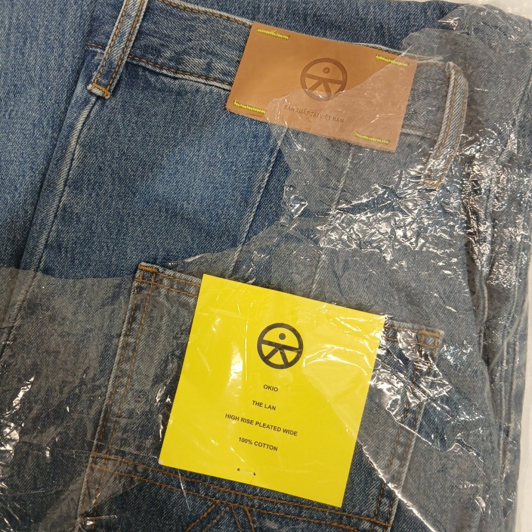 unisex okio the lan 100% cotton high rise pleated wide jeans - 30w x 32l - Denim