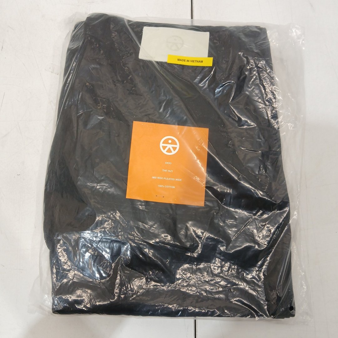 unisex okio the huy 100% cotton high rise pleated wide jeans - 30w x 32l - Black Denim