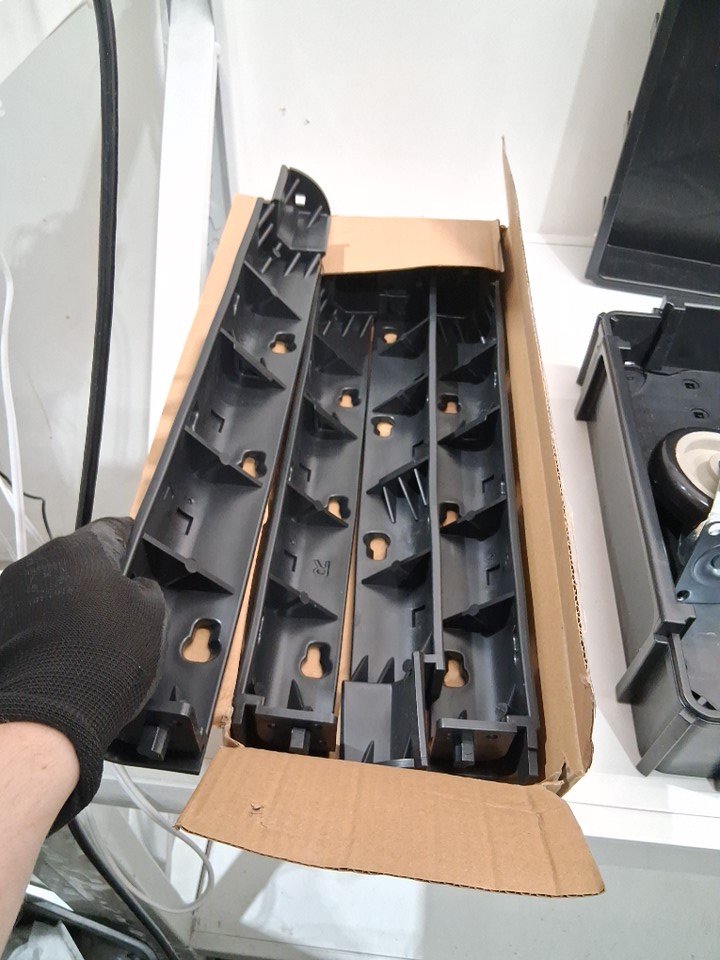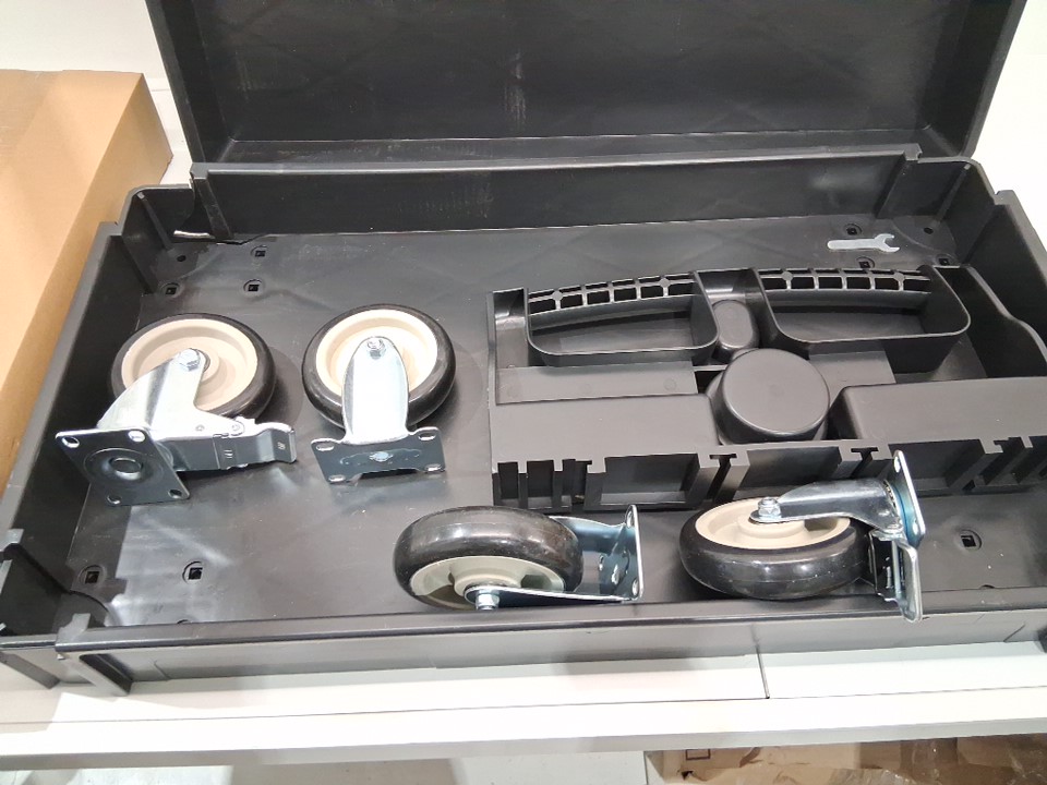 Wheels seem lightly dirty and one of the platform corners is cracked
