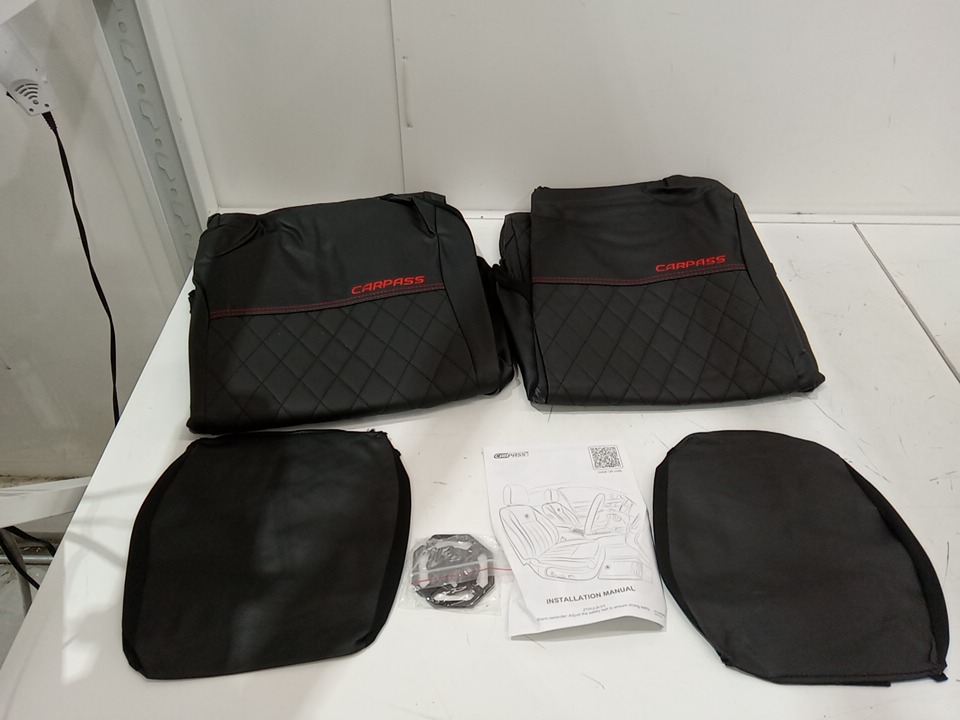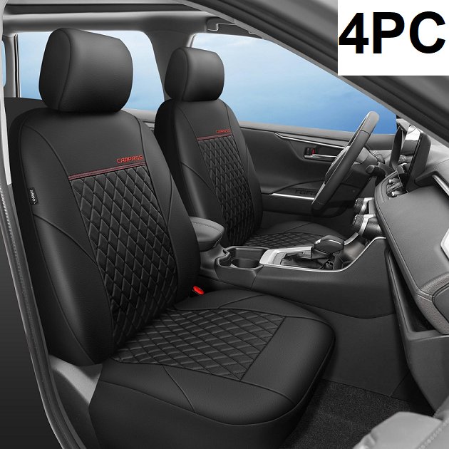 4pc car pass quilted leather car seat covers for the front driver and passenger seats - universal fit - black/red (model: zt618pu-bk1l2-xbz1)