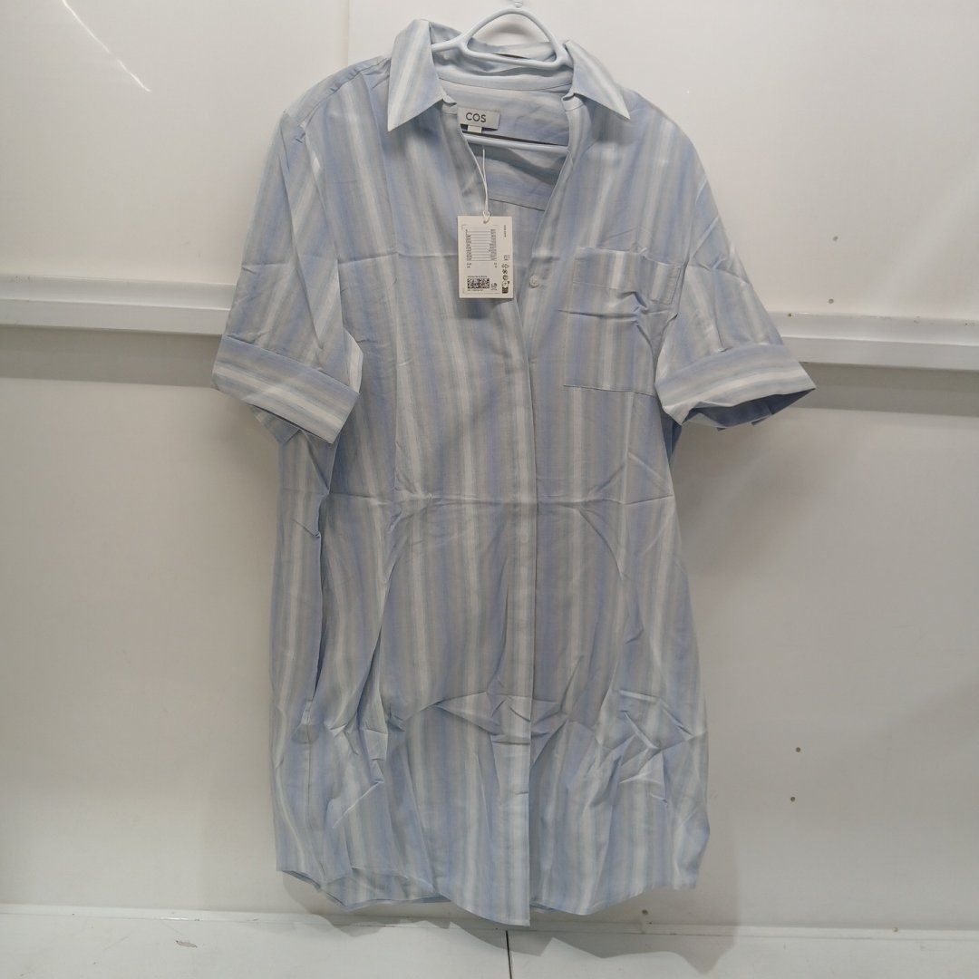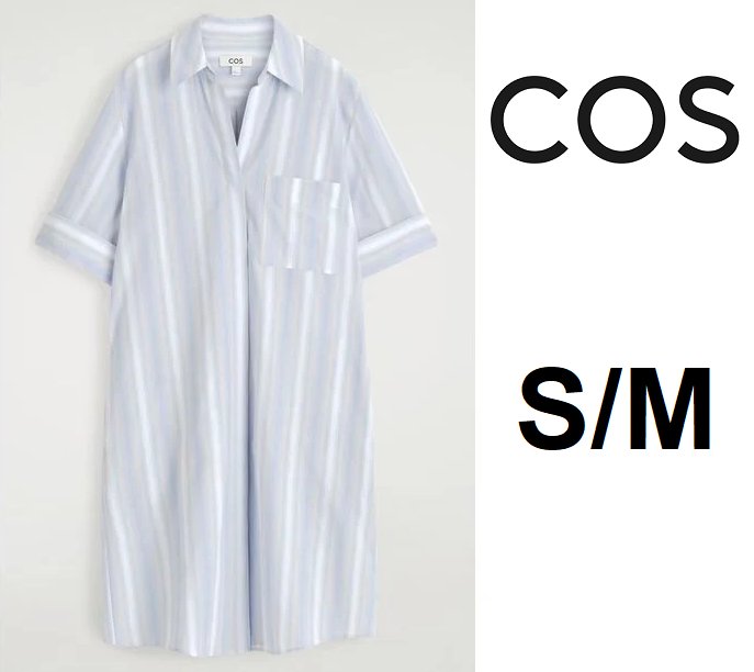 WOMEN'S COS STRIPED SHORT SLEEVE DRESS - S/M - Blue, White, Grey