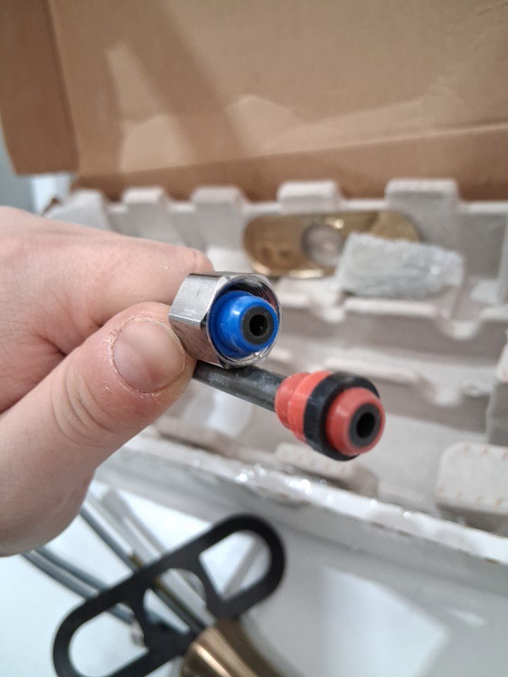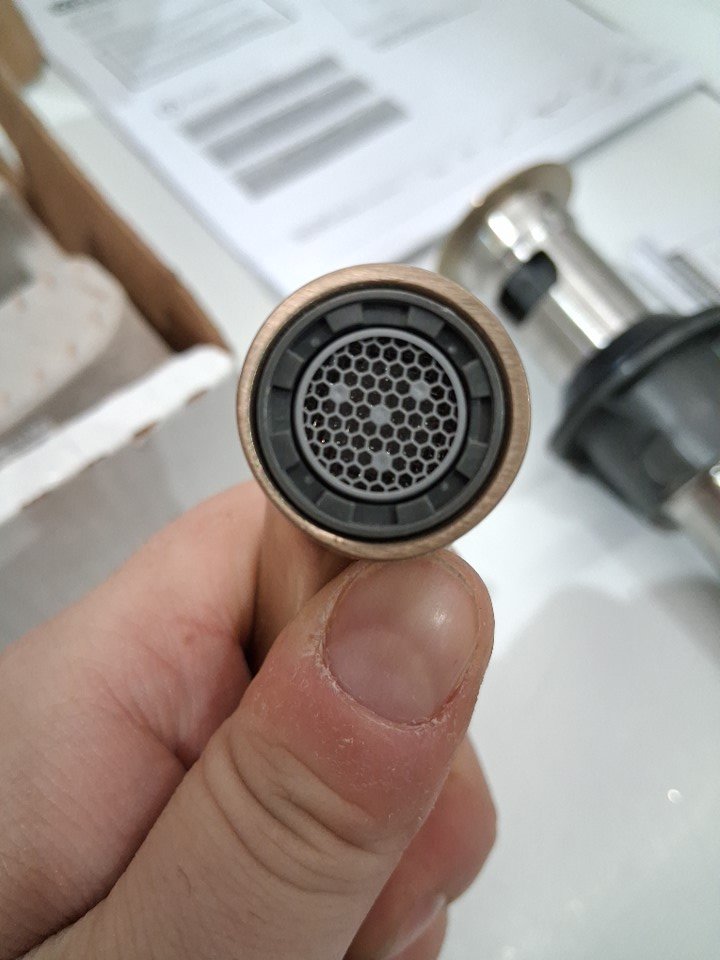 Item has some chalky, dusty substance on it but cord and faucet head both show no signs of use or installation