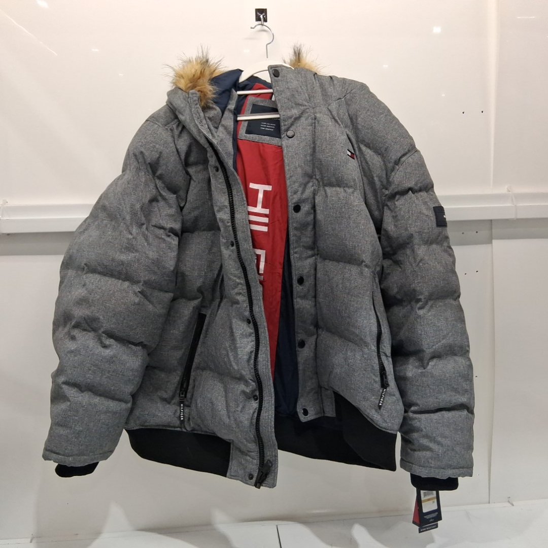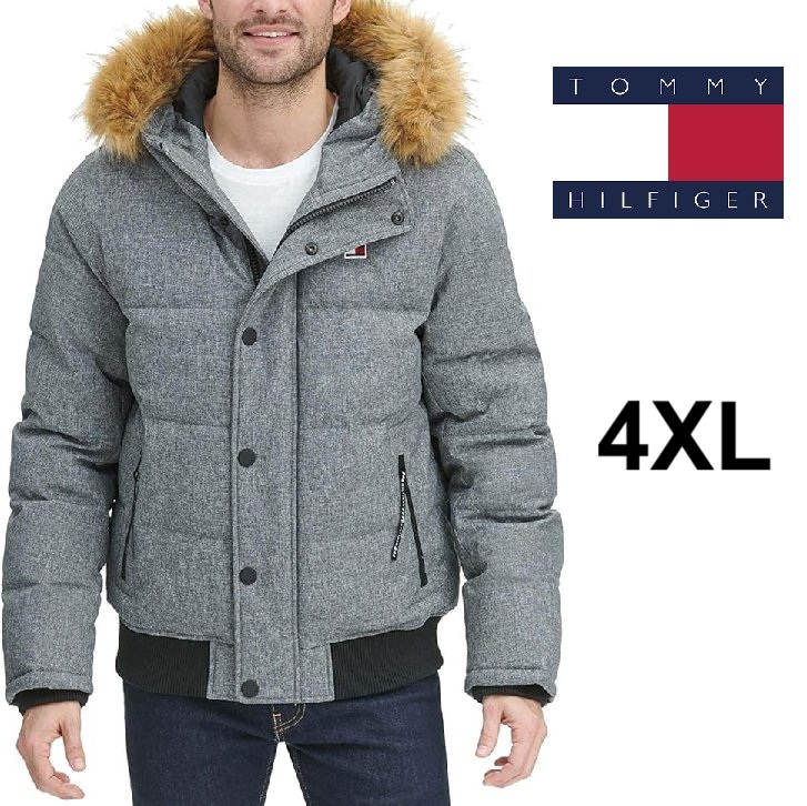 MENS Tommy Hilfiger Quilted Arctic Cloth Snorkel Bomber Jacket with Removable Hood fur - 4xl - HEATHER GREY (STYLE: 159xp863)