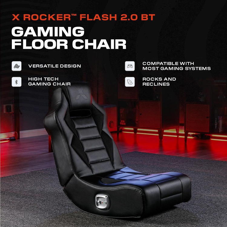 x rocker flash 2.0 audio foldable gaming chair with built-in bluetooth speakers - black (model: 5113401)