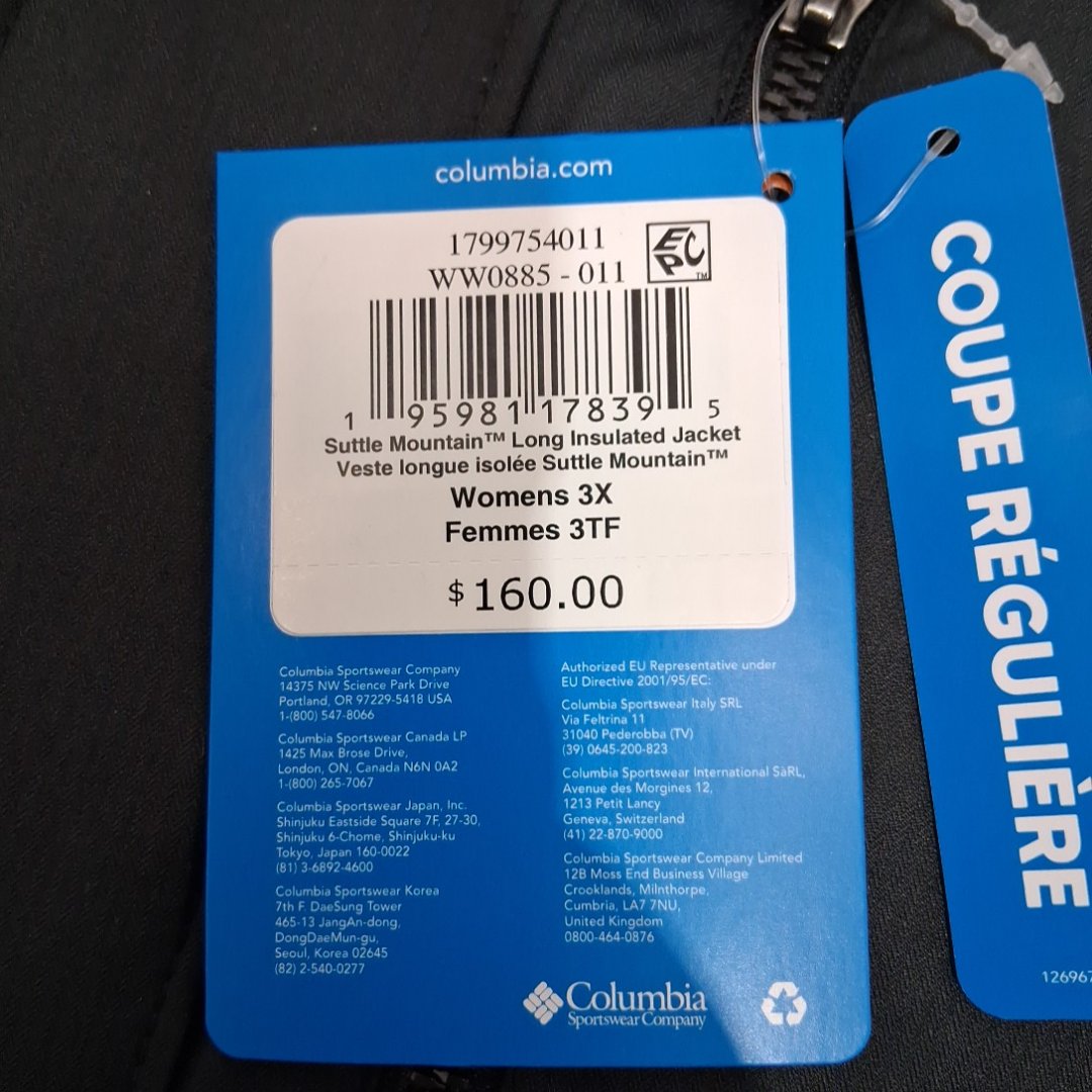 women's columbia Suttle Mountain Long Insulated omni-heat Jacket - 3x - black (style: ww0885-011)