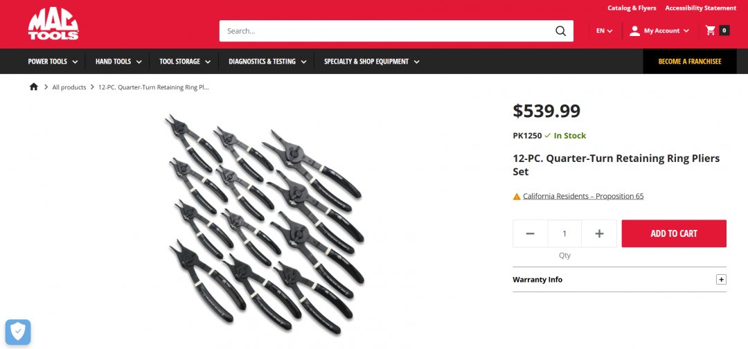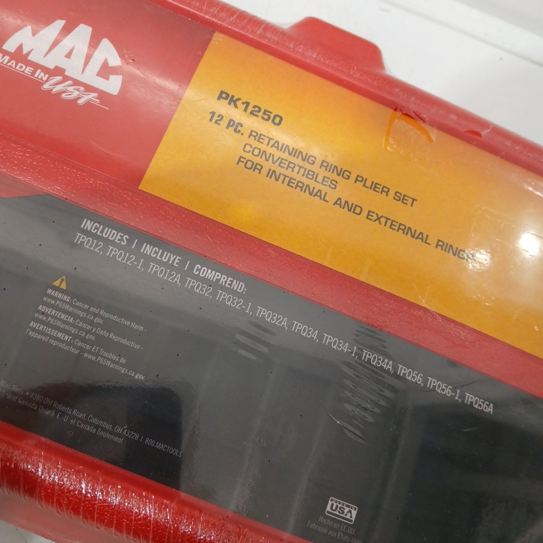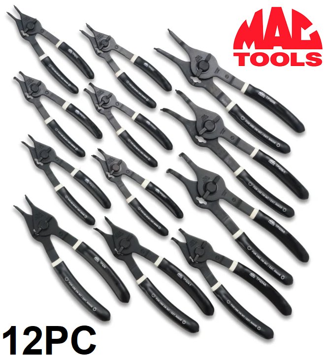 12PC MAC TOOLS QUARTER TURN RETAINING RING PLIER SET, CONVERTIBLES FOR INTERNAL AND EXTERNAL RINGS - (MODEL: PK1250)