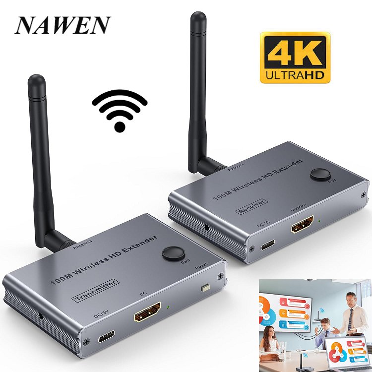 nawen 4K Wireless HDMI Transmitter and Receiver - 328FT, 5G Wireless HDMI Extender Kit - grey (model: wx001)