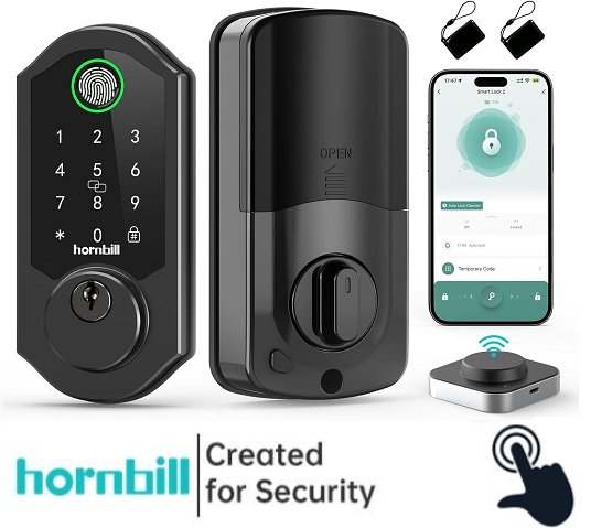Hornbill Smart Lock WiFi Deadbolt Keyless Entry Front Door Lock Gateway Sets, Alexa Fingerprint Smart Lock - black - (model:a4-bwf-h)
