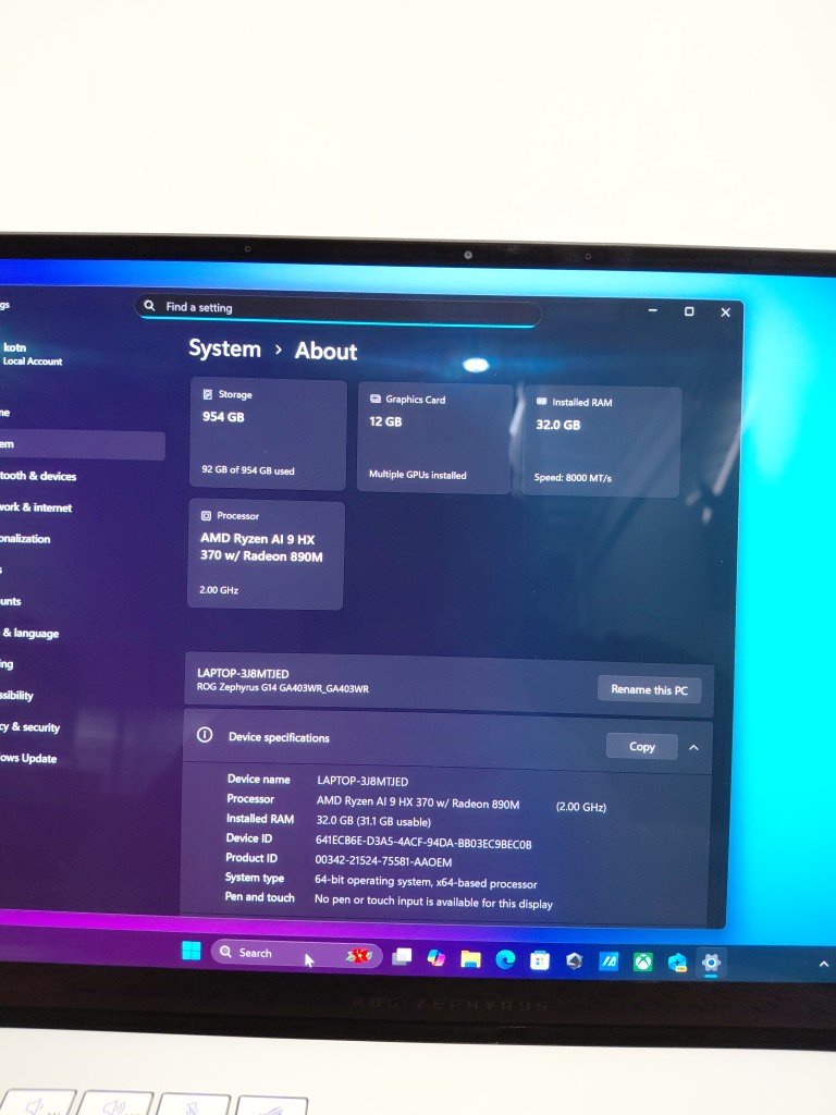 Asus ROG Zephyrus G14 (2025) Gaming Laptop, 14” Nebula Display 3k OLED Panel 120Hz/0.2ms, 100% DCI-P3, NVIDIA GeForce RTX 5070Ti, AMD Ryzen AI 9 HX 370, 32GB, 1TB - Platinum White (MODEL: GA403WR-DS96-CA)