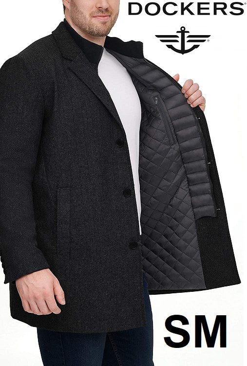 MEN'S DOCKERS HENRY WOOL BLEND TOP COAT - SMALL - BLACK (STYLE: DM9RP993).