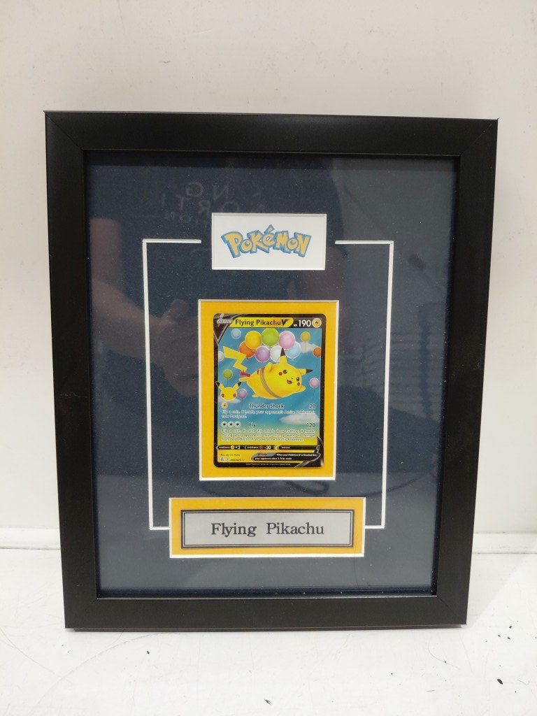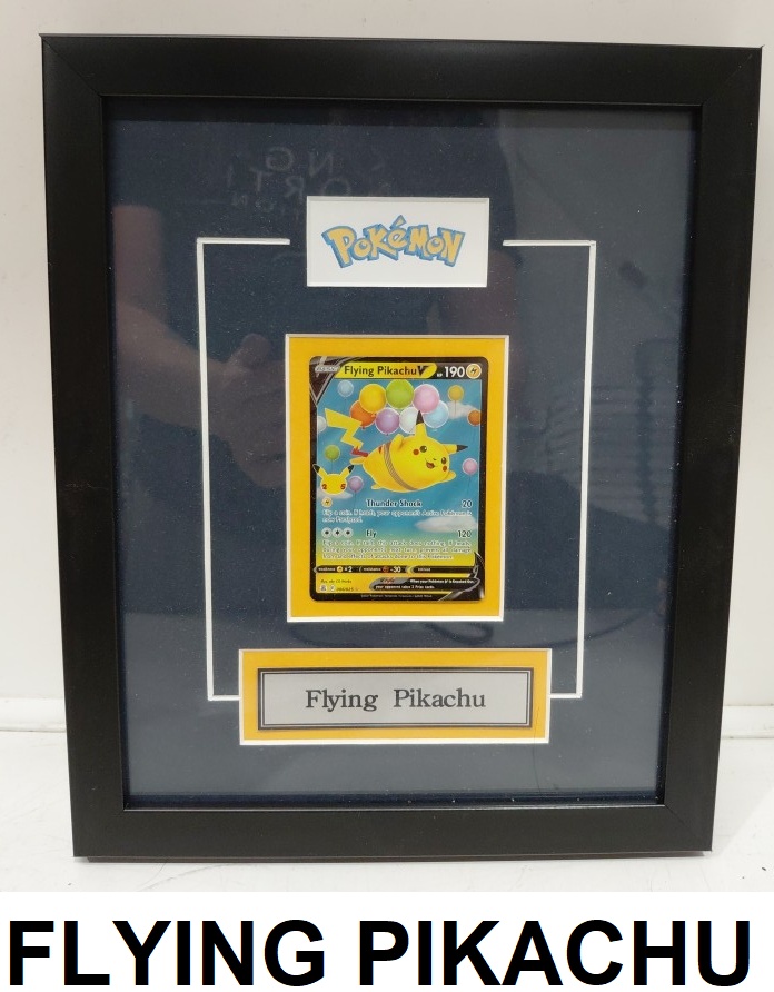POKEMON FLYING PIKACHU CARD CUSTOM FRAMED - 9.5"X11.5" - black