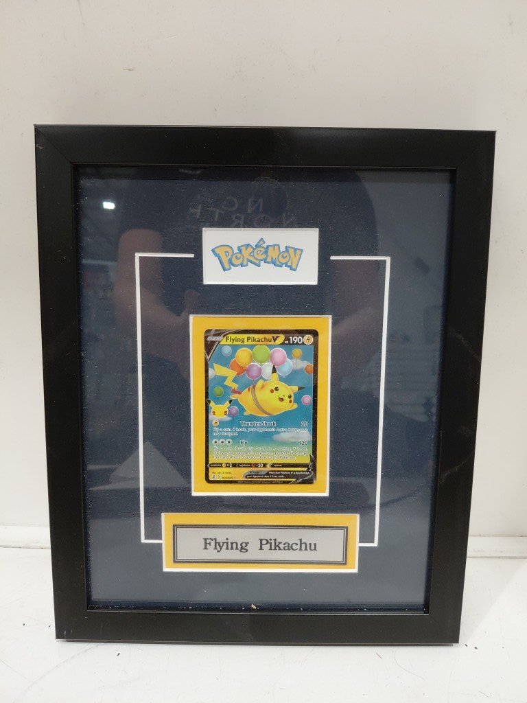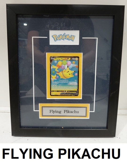POKEMON FLYING PIKACHU HOLO CARD CUSTOM FRAMED - 9.5"X11.5" - black
