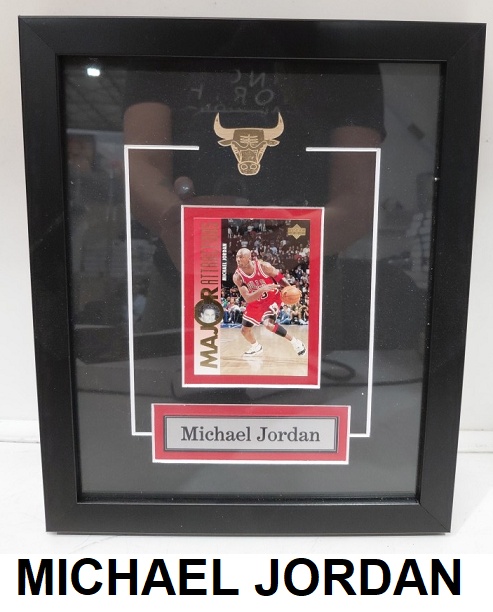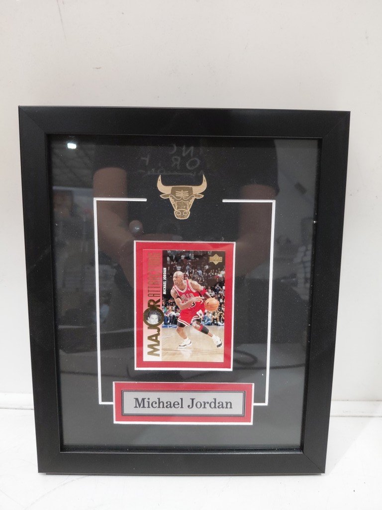 CHICAGO BULLS MICHAEL JORDAN CARD CUSTOM FRAMED - 9.5"X11.5" - black