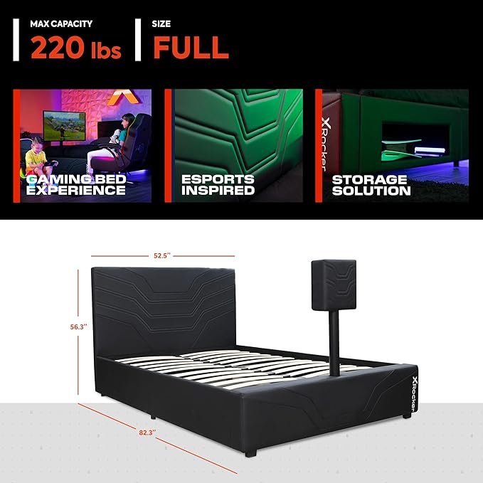 x rocker oracle gaming bed frame with rotating tv mount - full - black (model: 2112901)
