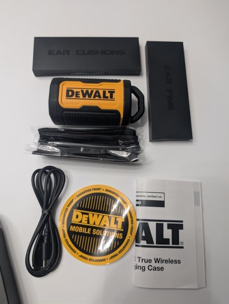 DEWALT JOBSITE PRO X2 ANC TRUE WIRELESS EARBUDS WITH 38 DB NOISE REDUCTION AND TURN DIAL CONTROL - 10 HR RUNTIME - ACTIVE NOISE CANCELING - SWEAT AND WATER RESISTANT (MODEL:DXMA1902097)