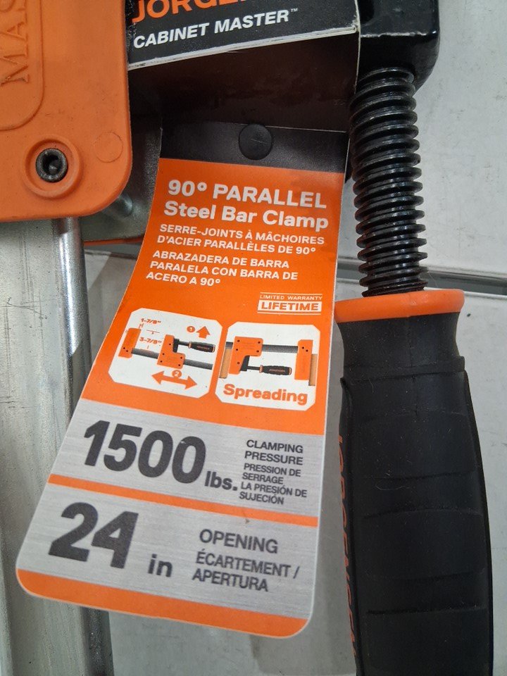 2PK JORGENSEN 90 DEGREE CABINET MASTER PARALELL JAW BAR CLAMPS - 24", 1500LB pressure - ORANGE