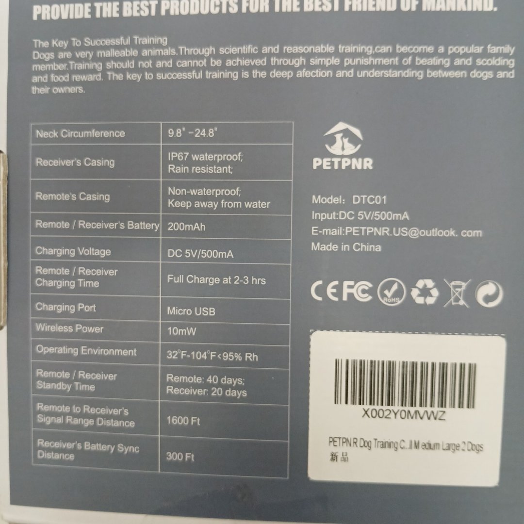 PETPNR DOG TRAINING COLLAR, Rechargeable Electronic Collars with Remote - MEDIUM 9.8" - 24.8" NECK , 200MAH BATTERY 5V - BLACK (MODEL: DTC01)