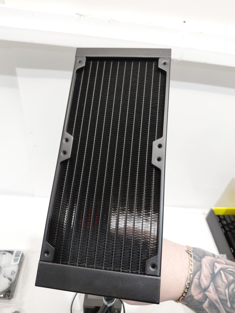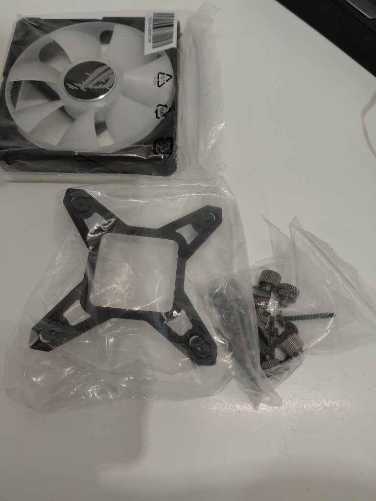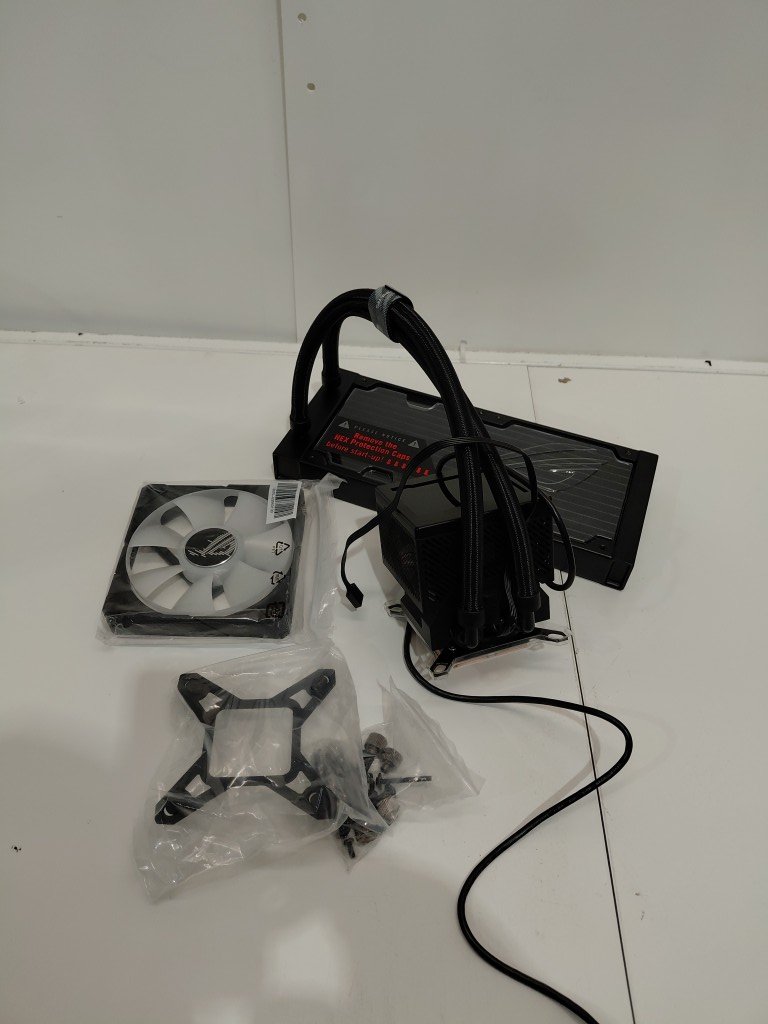 missing one fan, may require additional hardware has thermal paste residue on the cold plate