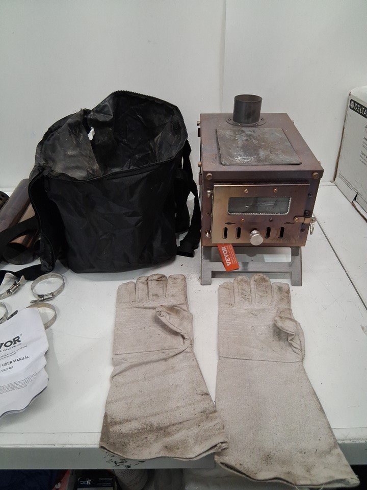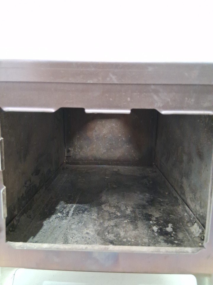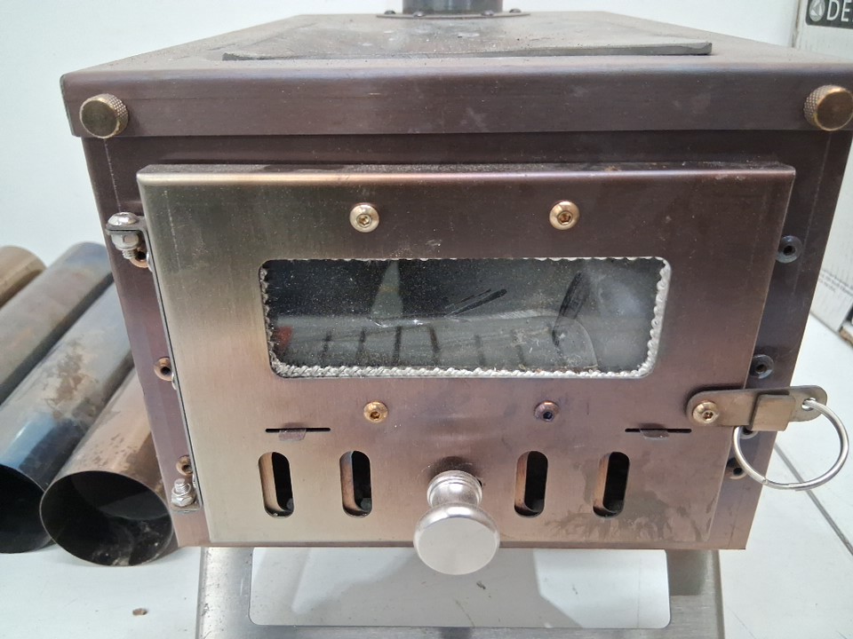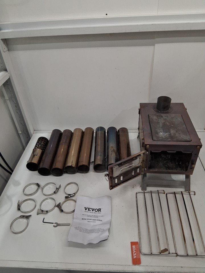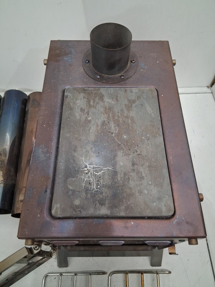 Please note that there is ash and debris on the item and it will require a good clean. There is a dent on the top surface of the stove There is some discoloration on the item presumably caused from previous use. The glass door has a small crack (See Photos)