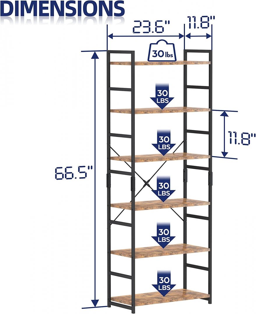 NUMENN 6-TIER MODERN WOOD AND METAL BOOKSHELF - 66'' - brown/black (MODEL: C10)