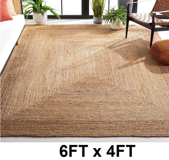 Rectangular Braided 100% natural Jute WOVEN INDOOR AREA RUG - 6FT X 4FT - BROWN