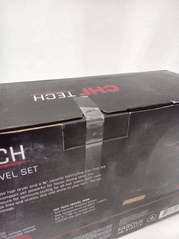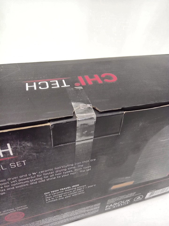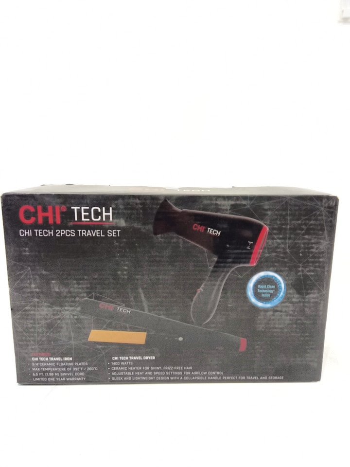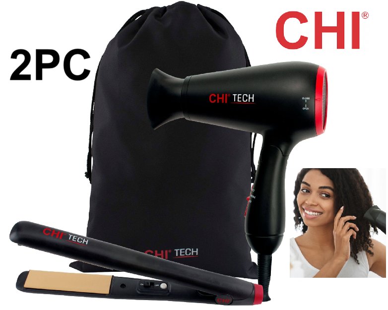 2PC CHI tech travel set with storage bag - travel hair dryer & travel hair straightener - black ( model:gf8511)