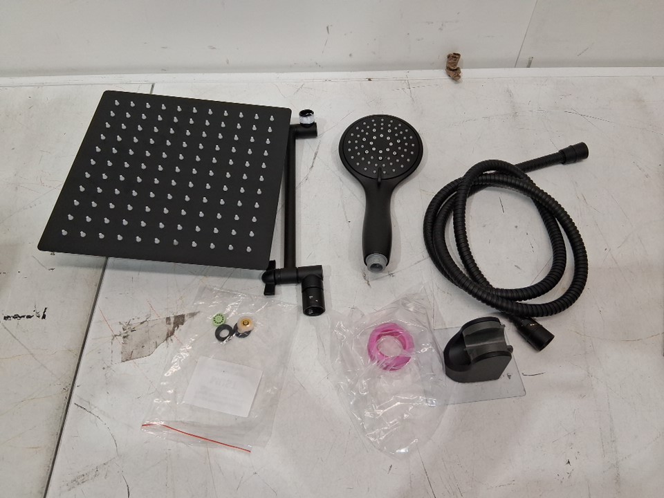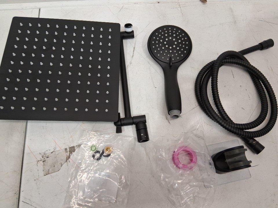 COSYLAND RAINFALL FIXED SHOWER HEAD/HANDHELD WITH 9 SETTING SPRAYS KIT WITH 4 ADDITIONAL ADHESIVE HOOKS - 8" - Black (MODEL: ‎CS0086-2-CA)
