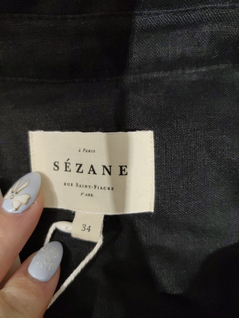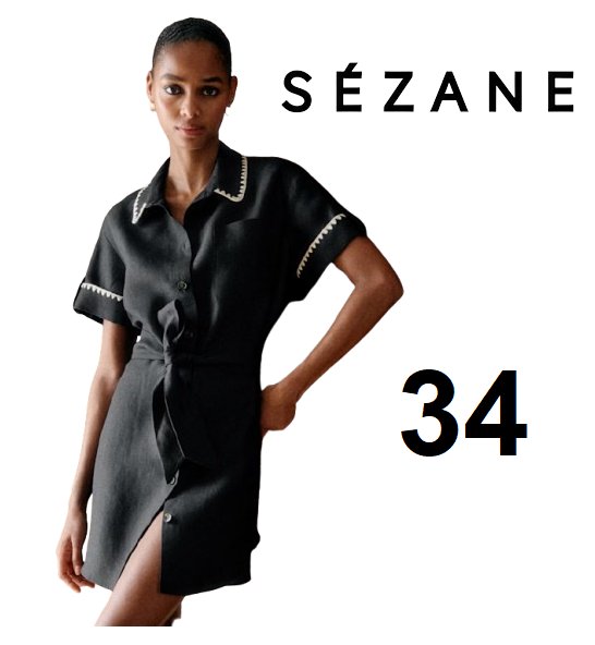 WOMEN'S sezane ana linen dress - size 34 - black/white